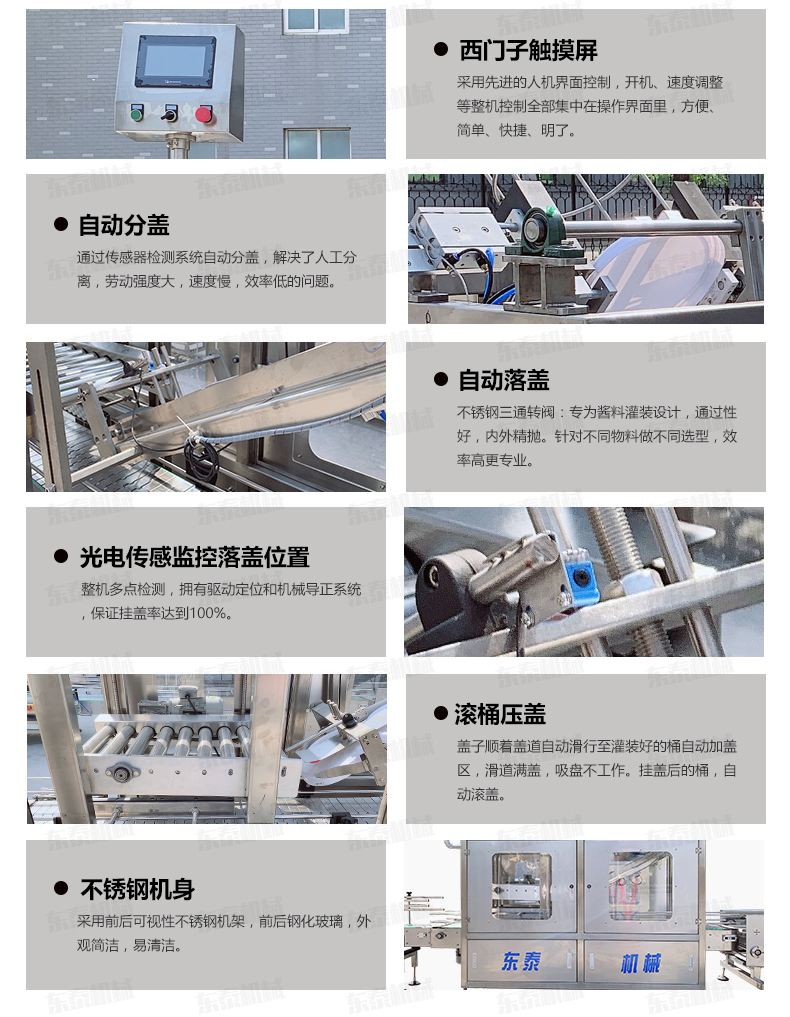 1.“自动吸盖”自动控制系统:整机多点检测,通过光电传感监控落盖位置