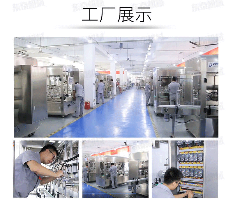自动供瓶机+全自动滚筒洗瓶机+自动六米烘干机+自动收瓶机+全自动六头灌装机自动灌装+全自动提盖机自动理盖、提盖、挂盖+六头真空旋盖机同时六个头真空旋盖+套标机+收缩机+圆瓶贴标机+整理平台;
