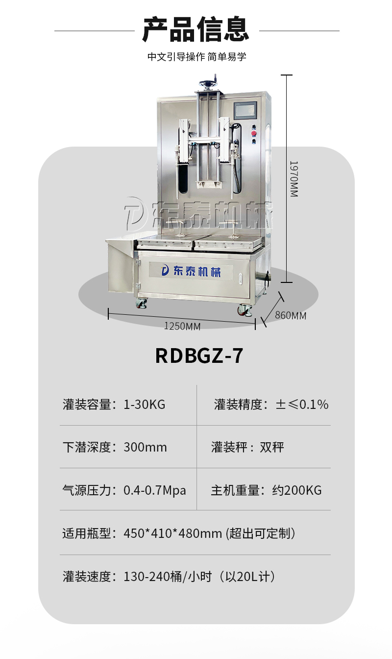 灌装容量:1-30KG(适用瓶型450*410*480,超出另行定制)