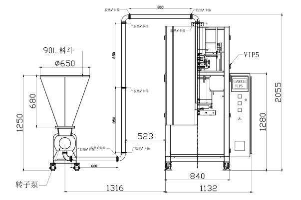 开机温度达到恒温→设置参数→物料倒入料斗或用管引入(机器自动从料斗吸入物料)→按设定重量自动定量下料→自动包装机自动制袋成型 (可选配冲孔、插角、排气等附件装置)→填充→封合→打印日期→包装机完成自动封切→-成品包装经成品输送机输送;