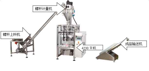 与螺杆计量机组合,可以包装粉剂类的各种产品。如:面粉、生粉、豆粉、奶粉、葡萄糖粉、冰淇淋粉、胡椒粉、鱼饲料粉、咖喱粉、可可粉、洗衣粉、碱粉、有机化肥等。