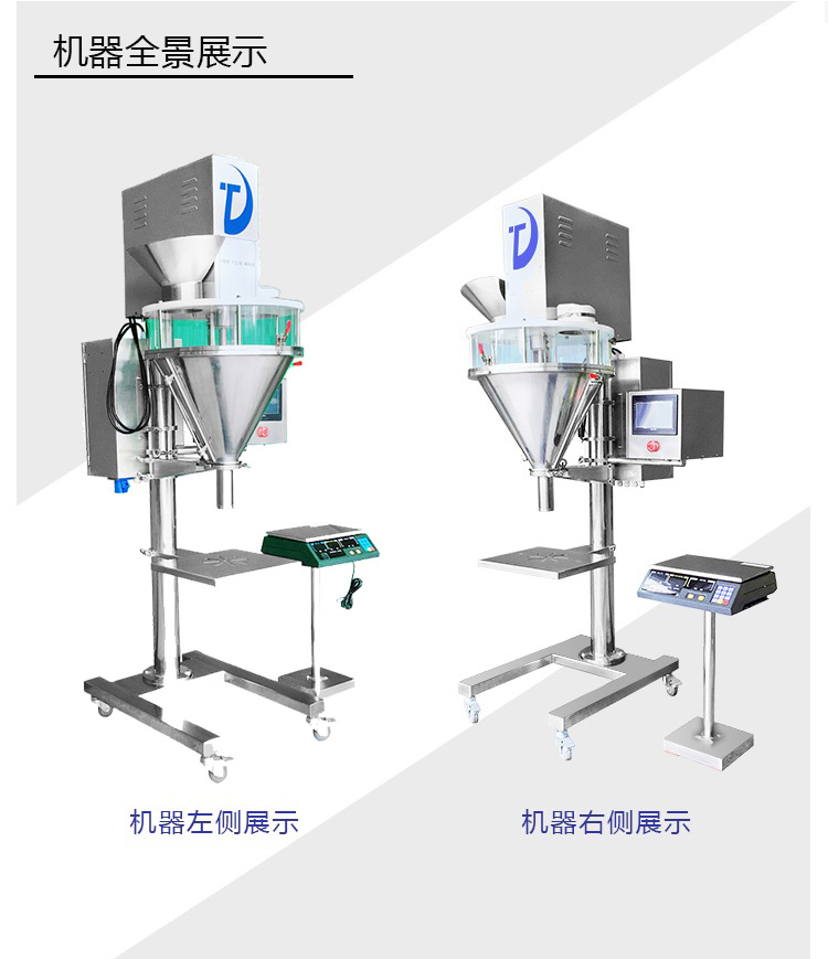 该半自动粉剂包装机也可称为粉剂定量包装机是按照国家GMP标准而设计,集机、电、光、仪于一体,单片机控制, 具有自动定量、自动充填、重量超差报警、自动调整计量误差等功能,精度高、速度快、扭距大、寿命长。电子传感控制称重反馈,对包装容器不限制,适合物料品种和包装重量规格经常变化的场合使用;数码管显示,操作简单方便;各种产品调整参数、配方可储存,最多可储存10个配方;不锈钢和有机玻璃组合式料箱,无需工具即可方便拆洗。