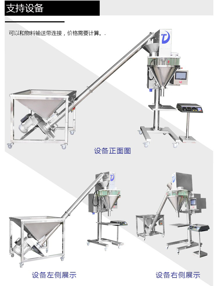 该粉剂包装机适用于有一定流动性的粉剂状、颗粒状物料,可适合袋类、罐类、瓶类等各种包装容器粉剂定量包装,速度快、精度高。如农药、兽药、预混料、添加剂、奶粉、淀粉、调味品、酶制剂、饲料等粉剂状、鸡精、饺子粉、葡萄糖、奶粉、绿豆粉、淀粉、调味料、饲料、颗粒状物料的定量包装。粉剂包装机可以使用各种可热封合的复合膜包装材料,其包装材料可印刷成连续商标图案,也可以印刷成带有色标的单袋完整商标图案。
