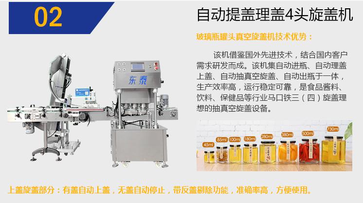3、该机主要由瓶子输送模块、理盖模块、电动取盖模块、旋盖模块、抽真空系统、电控模块组成,设计紧凑,自动化程度高,操作简便,节省人工。