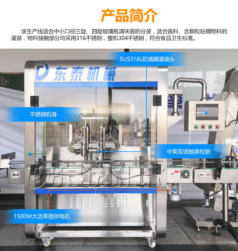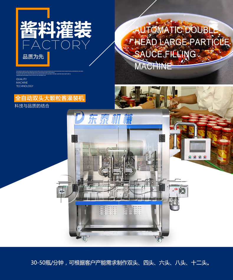 随着机械技术的快速发展灌装机的发展也是日新月异,使得其种类比较多。蘸酱在我国拥有悠久的历史,在我国烹饪中占有着重要的地位,发展到现在在做菜和食品中也不可或缺,巨大的市场使得蘸酱灌装机拥有巨大的市场,酱类厂家在引进设备时都想采购到高效率、适合自己的蘸酱灌装机械。人们对食品要求的提高使得酱类生产厂家迎来了较大的变格,安全卫生是非常重要的标准,因此对蘸酱灌装机的选择也更加的要求严格,许多传统的机械已经不能满足企业高标准、高效率的要求。因此选择一款适合的蘸酱灌装机械产品显得尤为重要。