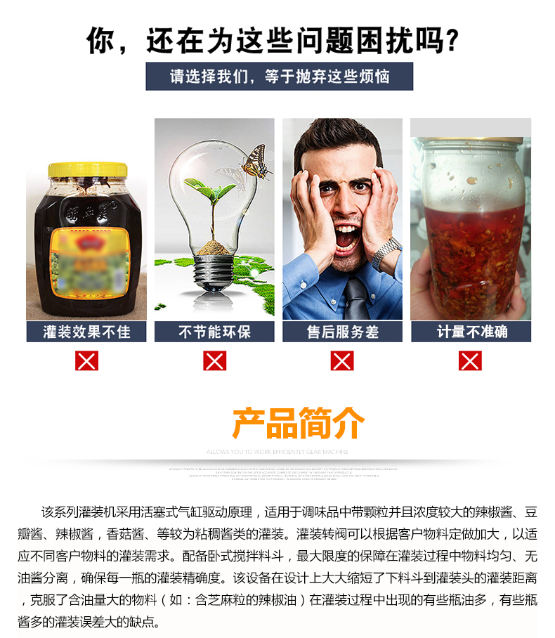 备注:果酱、酱料、花生酱、番茄酱、酱料、豆瓣酱、辣椒酱、虾酱、苹果酱、沙拉酱、鱼子酱、辣酱均可以灌装。