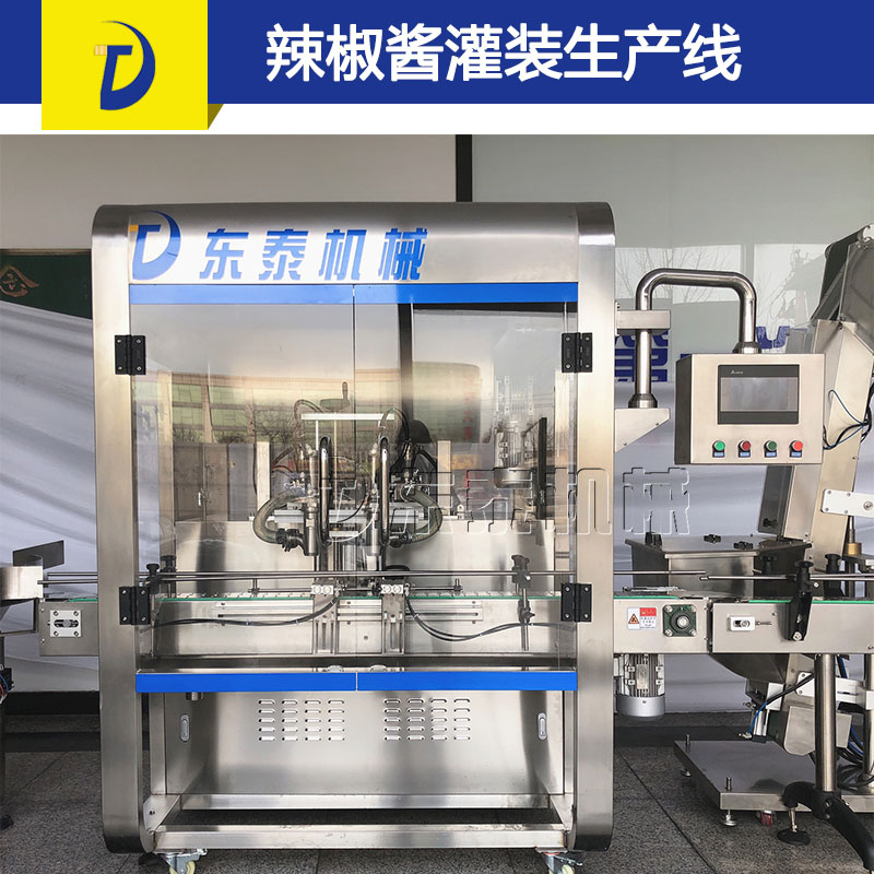 东泰机械老干妈辣椒酱灌装机不仅在技术上有了提升,可以根据客户物料定做加大,以适应不同客户物料的灌装需求。老干妈辣椒酱灌装机在设计上大大缩短了下料斗到灌装头的灌装距离,克服了含油量大的物料(如:含芝麻粒的辣椒油)在灌装过程中出现的有些瓶油多,有些瓶酱多的灌装误差大的缺点。 东泰老干妈辣椒酱灌装机 限度的保障在灌装过程中物料均匀、无油酱分离,确保每一瓶的灌装精确度。科技的不断的深入的发展和研究,让我们在老干妈辣椒酱灌装机的实力上也在不断的增加,东泰机械对于产品的各个方面上的研发的能力也在不断的提高。