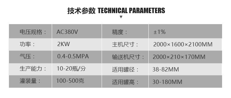 3、 该设备在设计上大大缩短了下料斗到灌装头的灌装距离,克服了含油量大的物料(如:含芝麻粒的辣椒油)在灌装过程中出现的有些瓶油多,有些瓶酱多的灌装误差大的缺点。