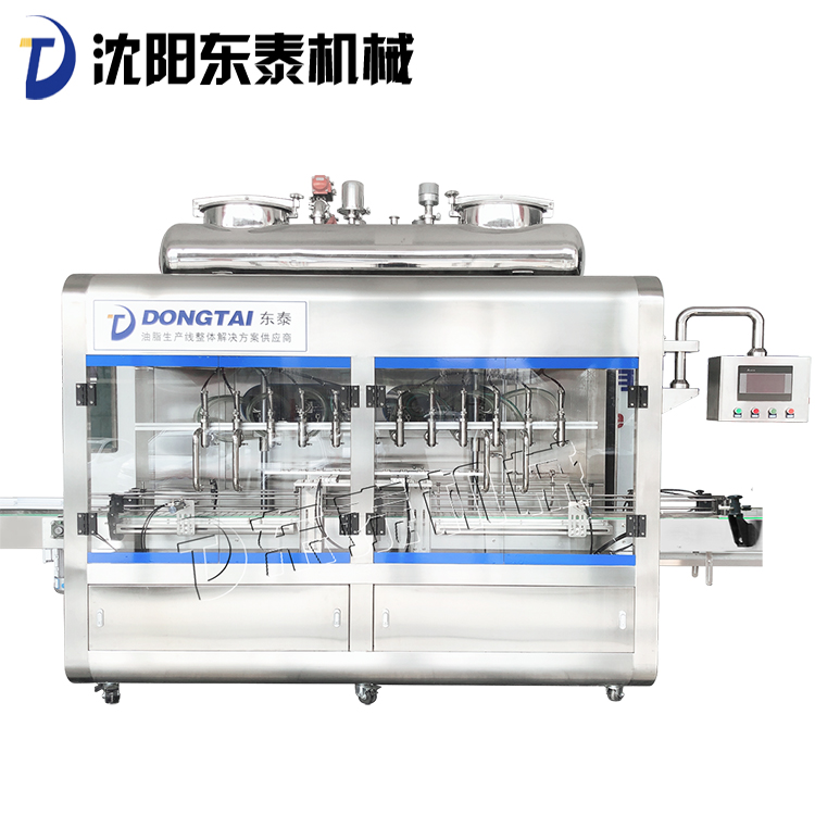 3、 该设备在设计上大大缩短了下料斗到灌装头的灌装距离,克服了含油量大的物料(如:含芝麻粒的辣椒油)在灌装过程中出现的有些瓶油多,有些瓶酱多的灌装误差大的缺点。